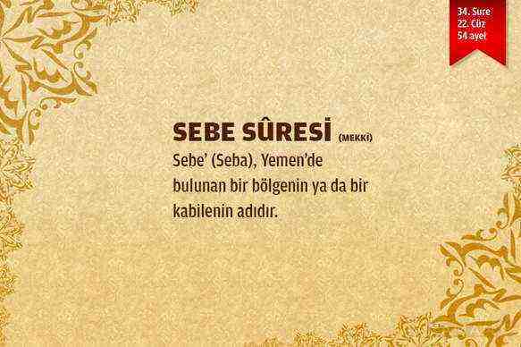 Kuranı Kerim’in 34.suresi olan Sebe Suresi.